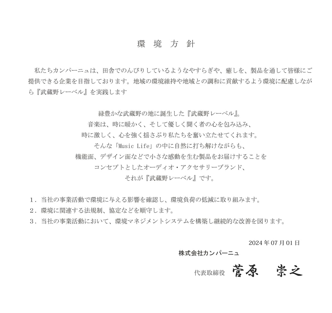 ・サスティナブルな製品をお客様に提案することにより循環型社会の中で地球環境保全に努めていきます。