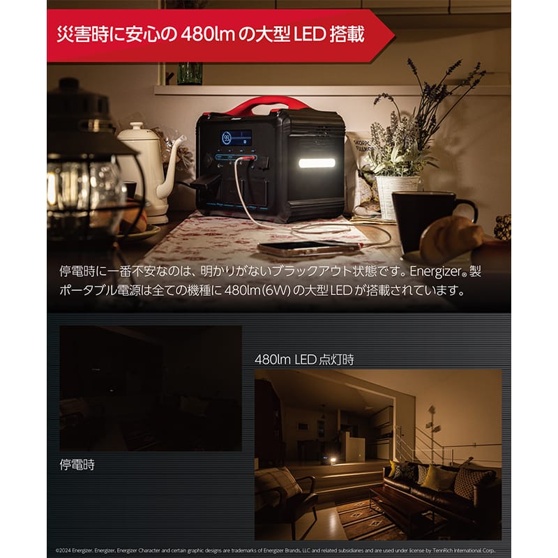 Energizer® 製ポータブル電源は全ての 480lm(6W) の大型LEDが搭載されています。